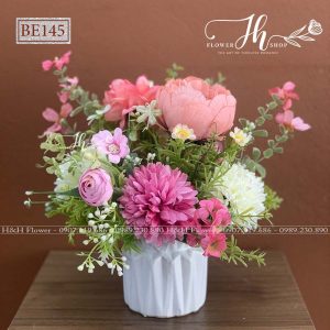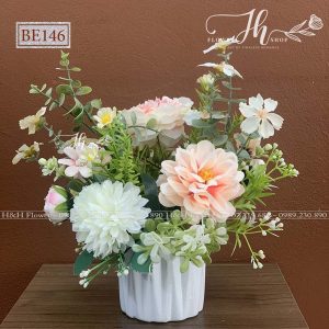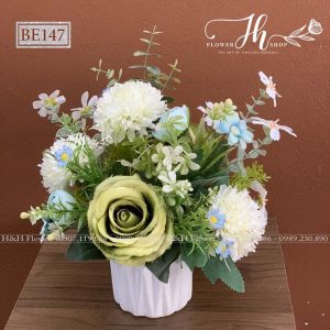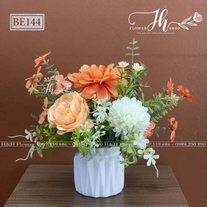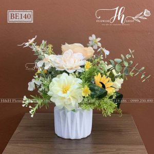 - Chất liệu: Hoa lụa cao cấp, bình sứ
