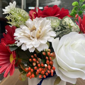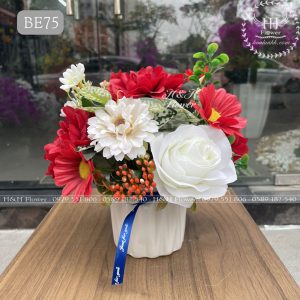 - Chất liệu: Hoa lụa cao cấp, bình sứ