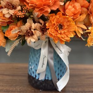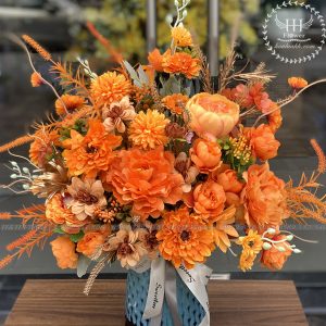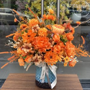 Hãy là người đầu tiên nhận xét “Bình hoa lụa tone cam TRU36”