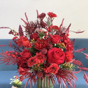 BÌNH HOA LỤA TRANG TRÍ SALON TÓC – TONE ĐỎ