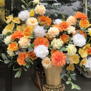 BÌNH HOA LỤA CAO CẤP PHONG CÁCH TÂN CỔ ĐIỂN TONE CAM