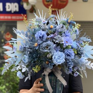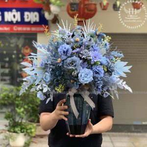 BÌNH HOA LỤA TRANG TRÍ – TONE XANH DƯƠNG