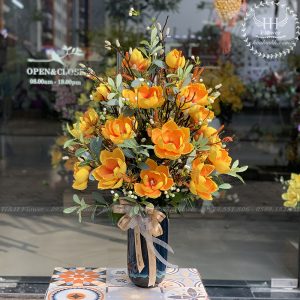 Hãy là người đầu tiên nhận xét “Bình hoa mộc lan cam 2 mặt HH287”