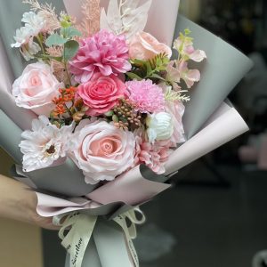 - Tên sản phẩm: Bó hoa lụa tone hồng BO77