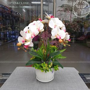 CHẬU LAN HỒ ĐIỆP NHỎ HH141HN – HOA TRẮNG NHỤY HỒNG