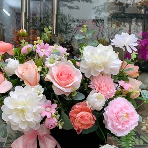 GIỎ HOA LỤA CAO CẤP TONE HỒNG GI25