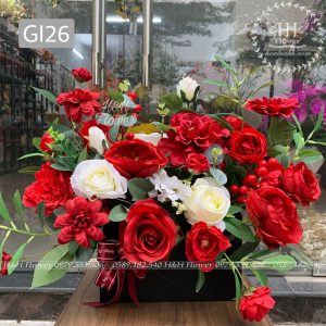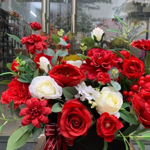 - Tên sản phẩm: Giỏ hoa lụa cao cấp tone đỏ GI26
