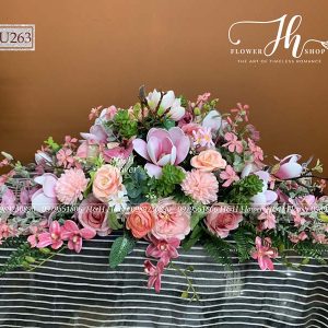 HOA ĐỂ BÀN HỌP, BÀN DÀI TONE HỒNG TRU263