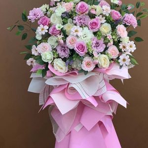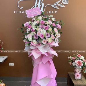 • Tên sản phẩm: Kệ hoa lụa chúc mừng tone hồng KE9