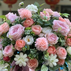 Hãy là người đầu tiên nhận xét “Lẵng hoa hồng lụa GI09”